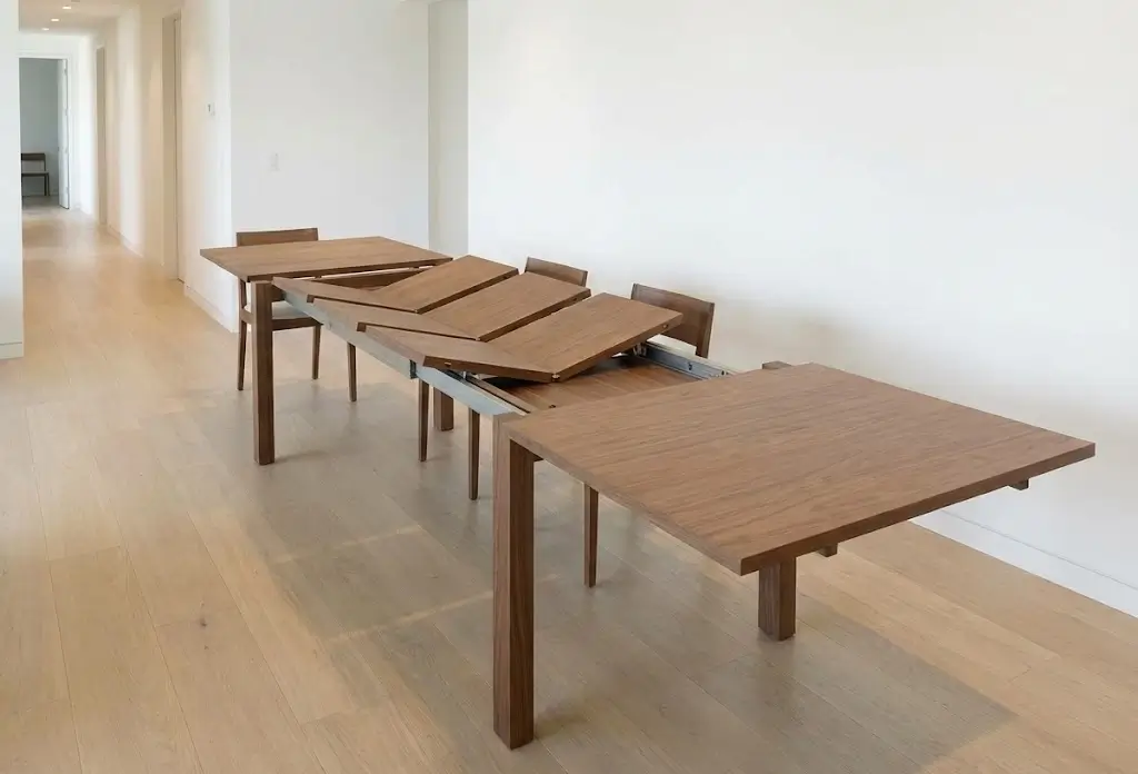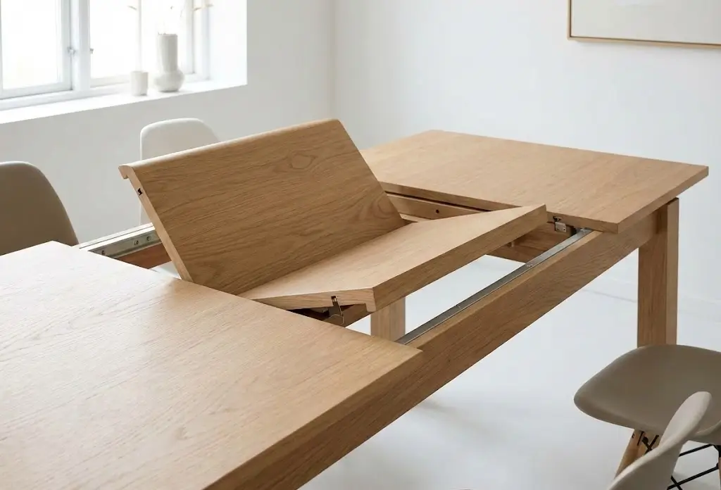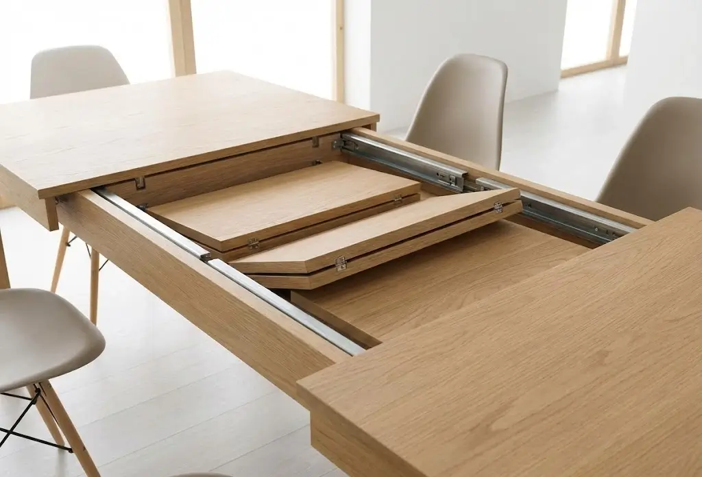 | Раздвижной (синхронный) | Столешница разъезжается в стороны, открывая вставку | Очень лёгкое | Высокая | Средняя/Высокая | Обеденные, ежедневно |