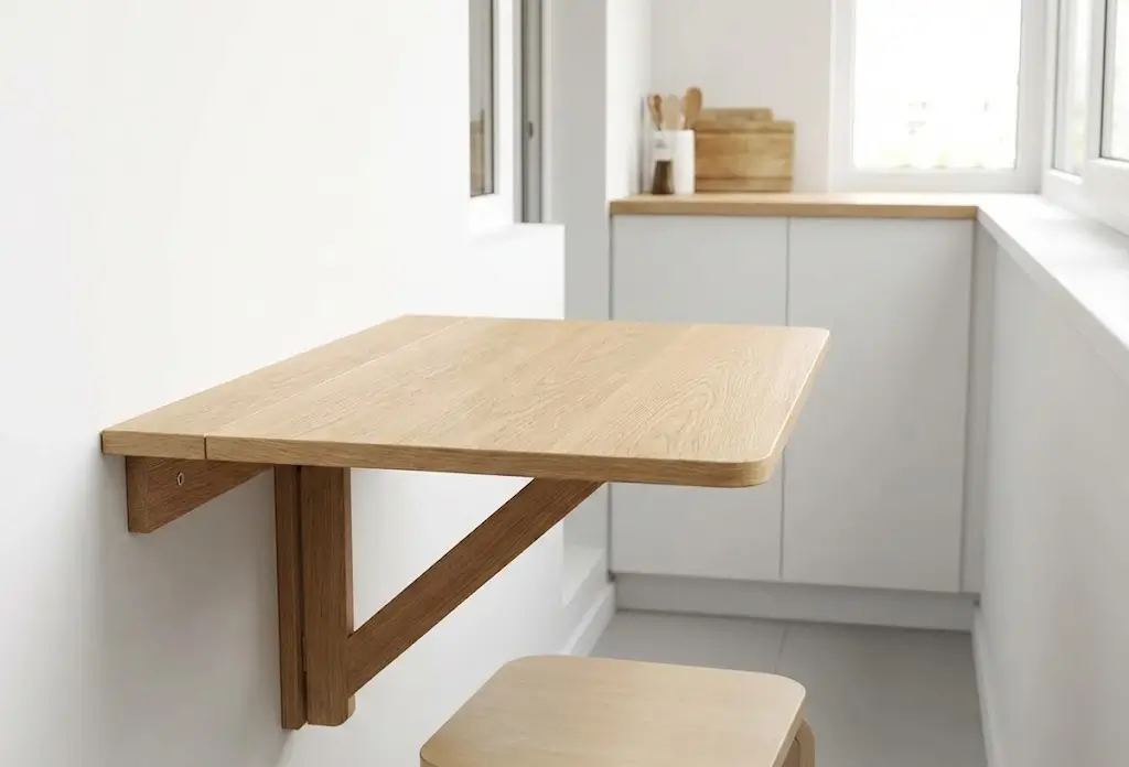 Заменяет журнальный и обеденный столы одновременно. В сложенном виде занимает всего 0,45 м², освобождая пространство для прохода в малогабаритных квартирах Бишкека.