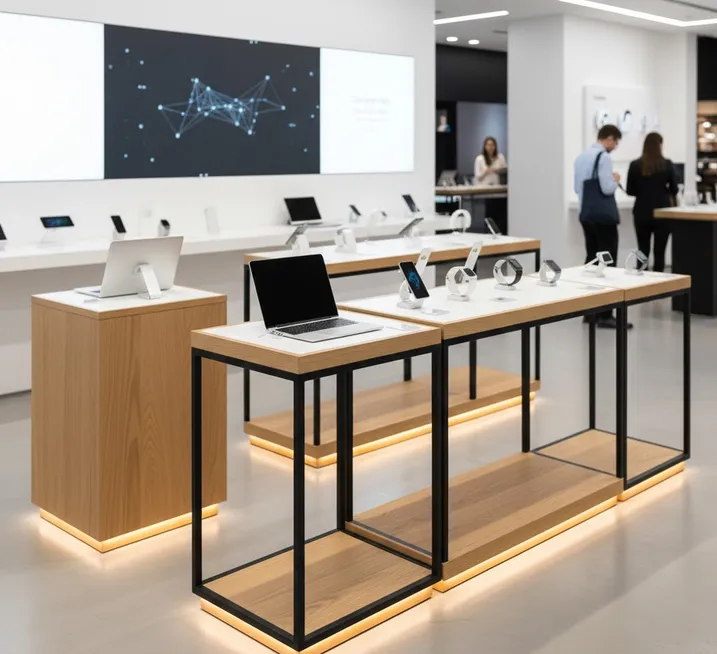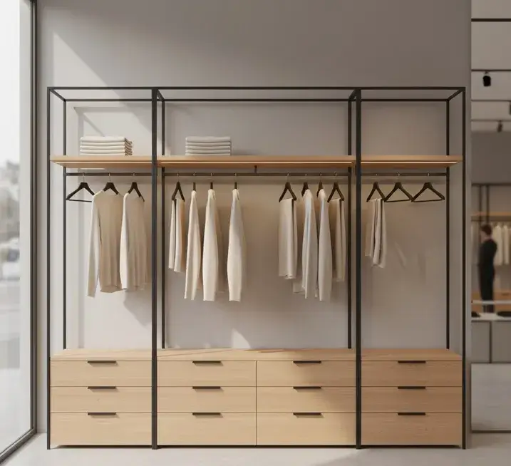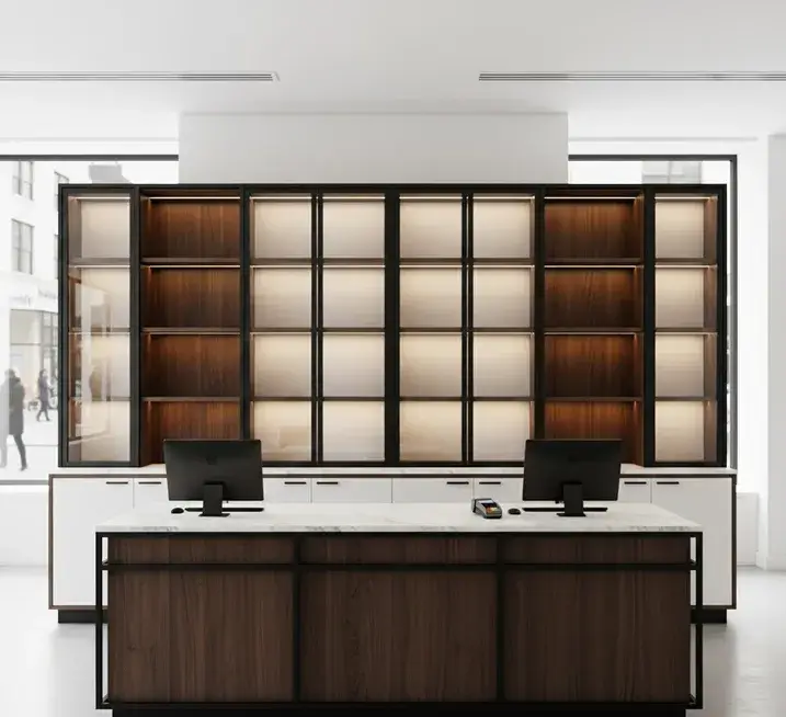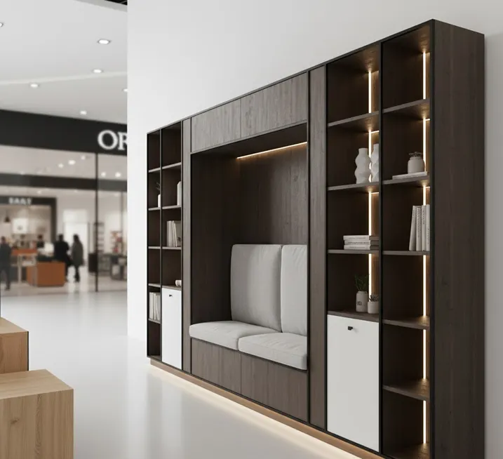 Для продуктовых магазинов и аптек я чаще всего рекомендую комбинацию: несущий каркас из стального профиля с порошковой покраской, фасады из МДФ с HPL-пластиком, столешницы из влагостойкого ЛДСП с кромкой 2 мм. Это оптимальный баланс между ценой и выносливостью для объекта с ежедневной санитарной обработкой. Для бутиков и ювелирных салонов хорошо работает стекло с минимальным количеством видимого крепежа — товар выглядит дороже, даже если его стоимость невысока.