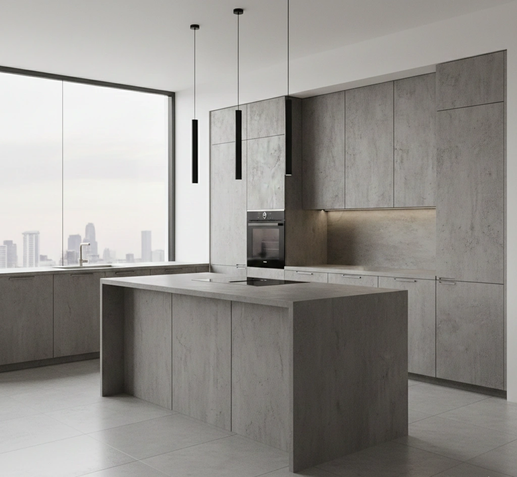 Кухня с фасадами под бетон
