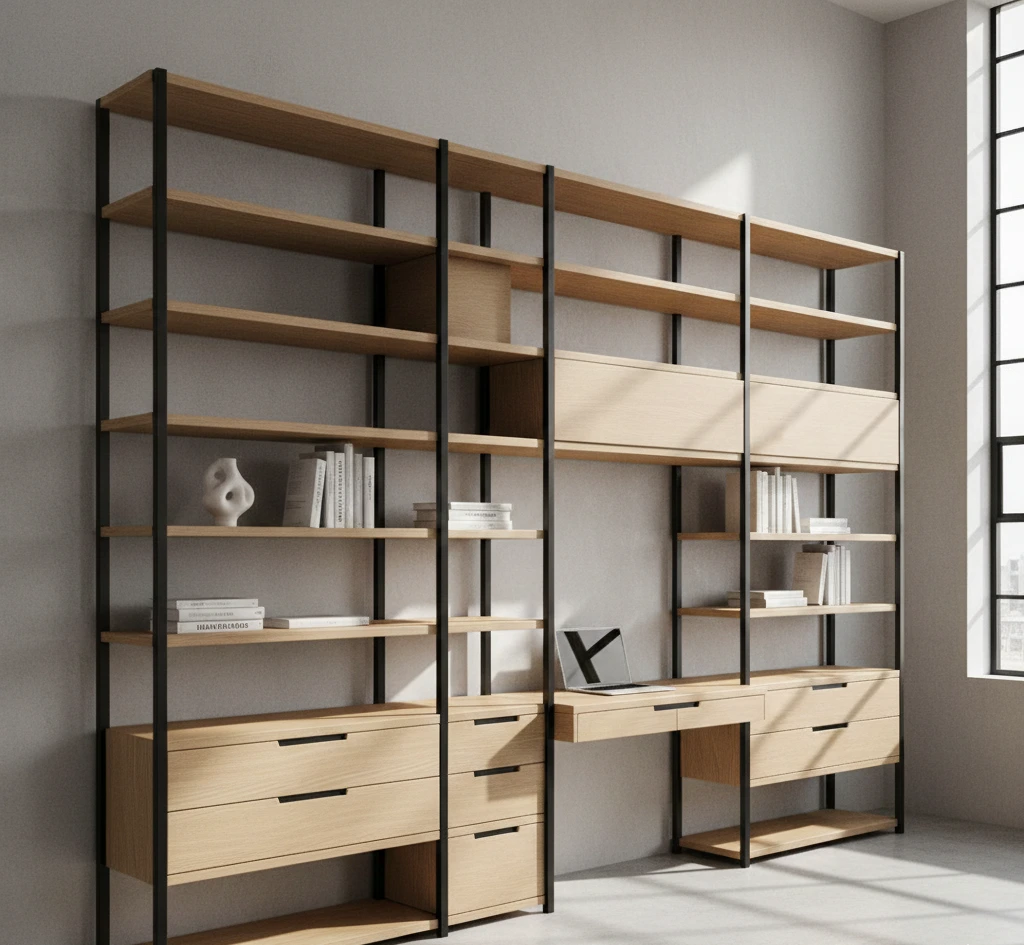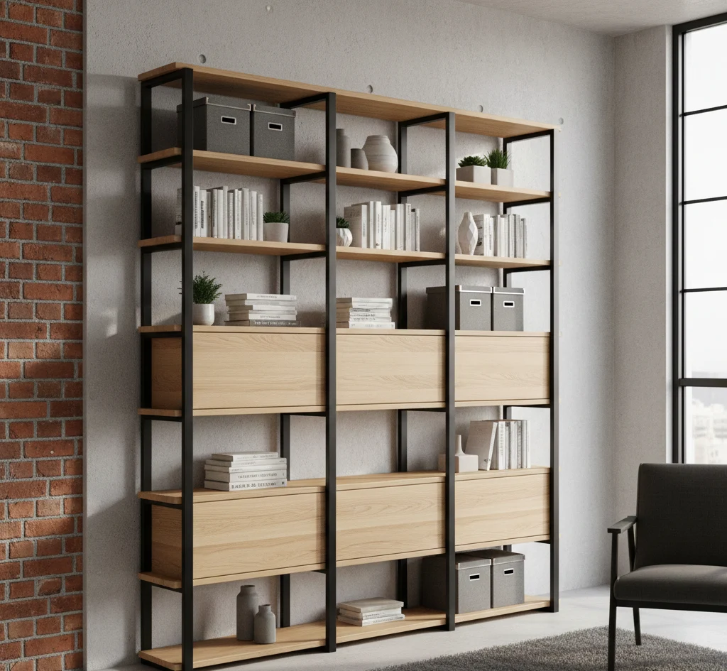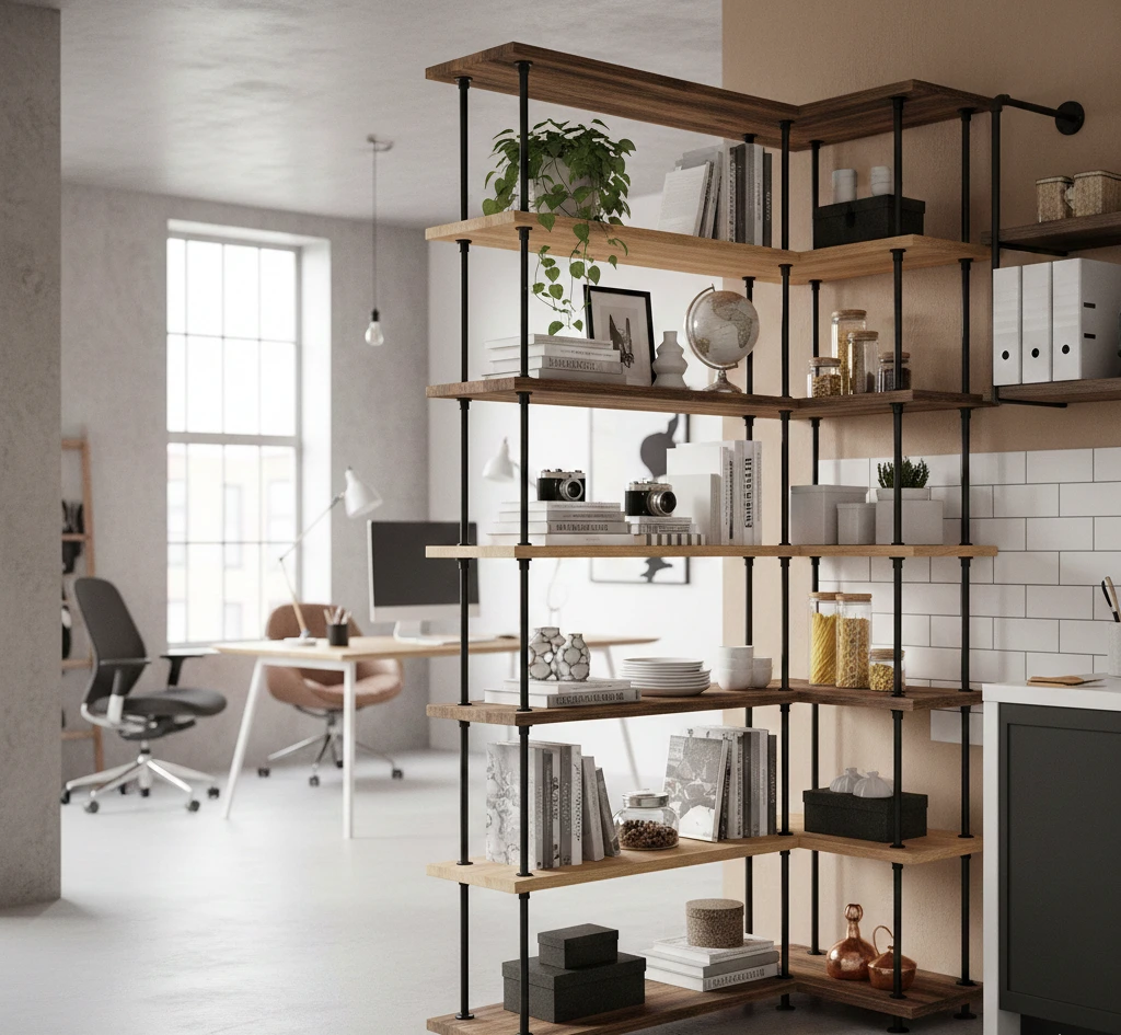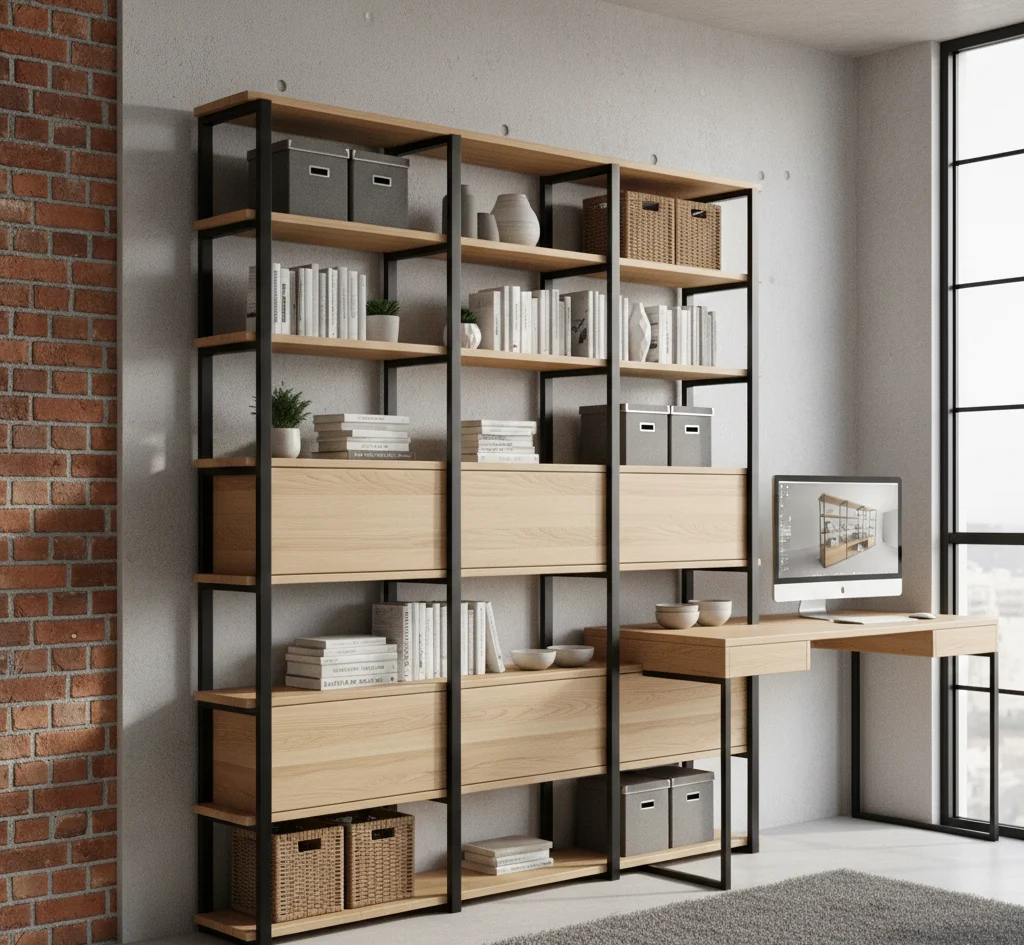 Система хранения в промышленном стиле — это не просто место для вещей. Это элемент, который формирует характер интерьера. Он показывает ваши предметы, а не прячет их. Он говорит о вашем вкусе, а не скрывает его.
