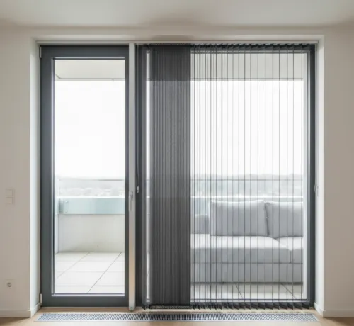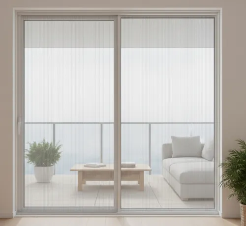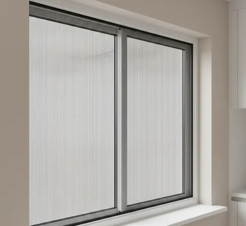 Система исключает детали под напряжением. Современная раздвижная москитная сетка плиссе работает за счет ручного сдвига профиля. Ткань складывается каскадом внутрь пенала, оставаясь невидимой.