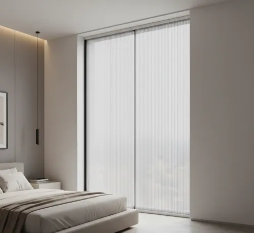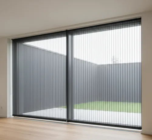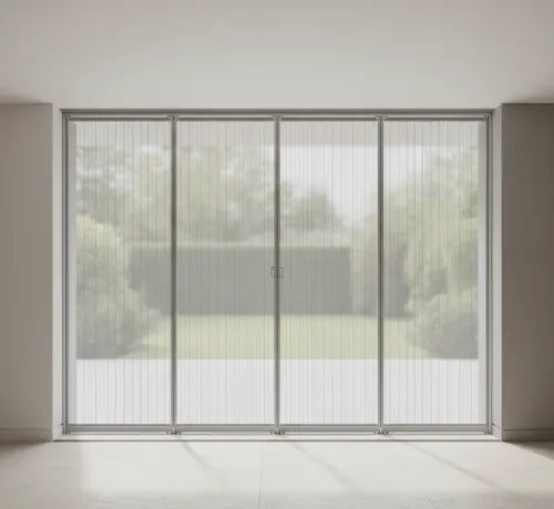 Делаем Плиссе на широкие входы: 1–2 створки, открытие влево/вправо или из центра. Решение для террас и панорамных дверей.