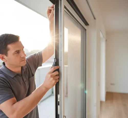 Профессиональная установка раздвижной москитной сетки обязательно включает ювелирную калибровку высоты кареток. Мастер обязан выставить безупречный уровень, иначе створка начнет самопроизвольно откатываться по уклону.
