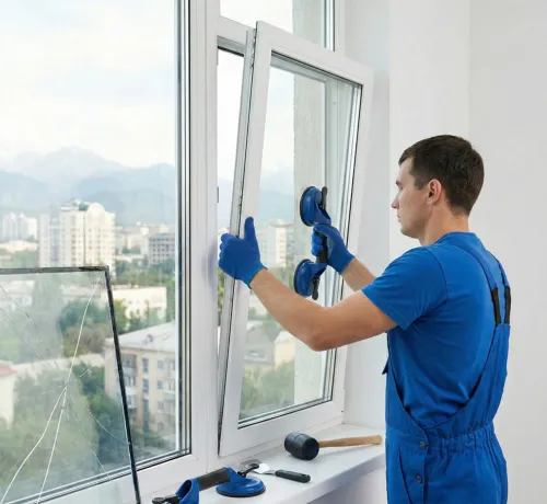 | Замена стеклопакета (однокамерный/двухкамерный) | от 2 850 сом/м² | 2–3 дня |