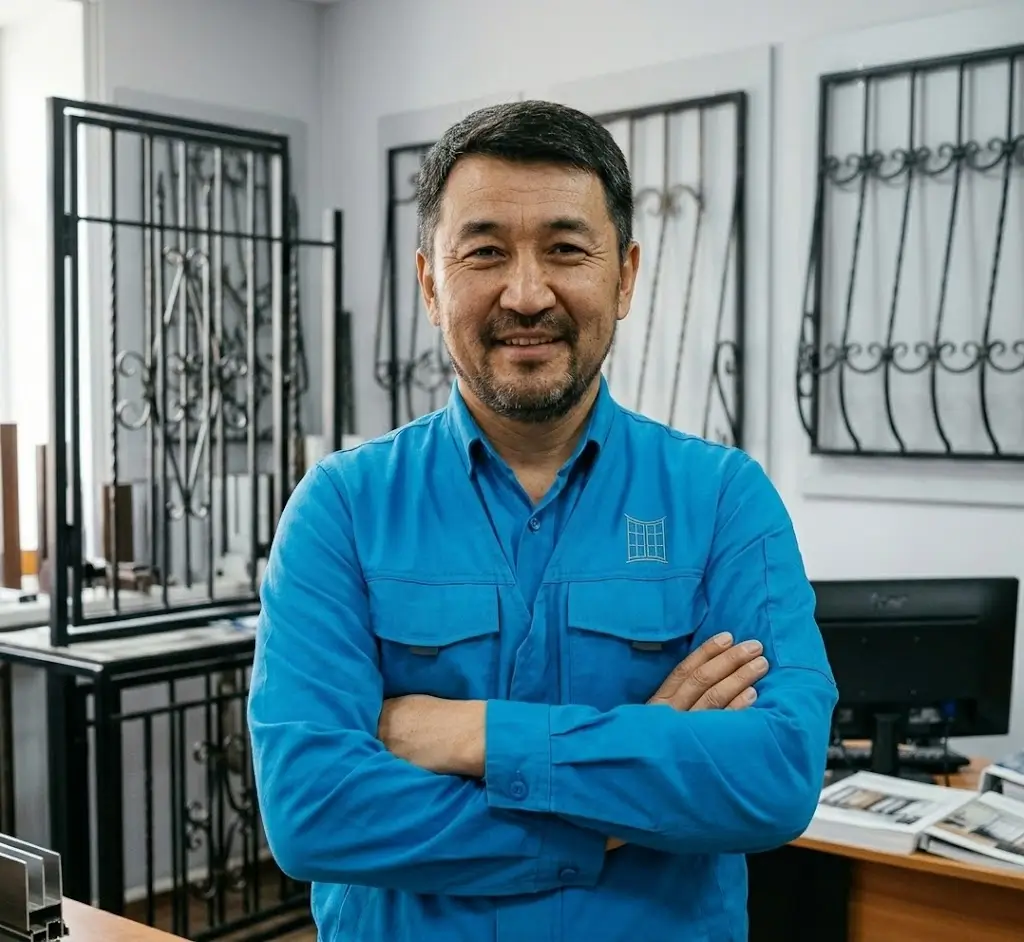 Выезд замерщика — 0 сом. Стоимость фиксируется в договоре. Сварка, подъем на этаж и расходники уже включены. Никаких скрытых платежей.