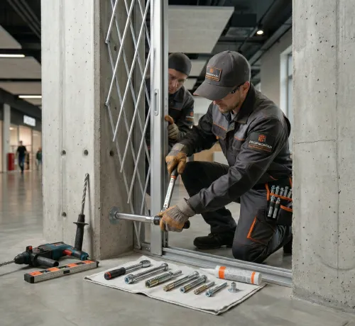 Технический процесс начинается с аудита проема. Ошибка на этапе проведения замеров приведет к перекосу стальной рамы при установке. Профессиональное изготовление раздвижных решеток требует выезда инженера на строительный объект. Специалист проверяет плотность материала несущих стен. В старых многоквартирных домах кирпич часто крошится от времени. Монтажные бригады используют инъекционные химические анкеры. Состав заполняет пустоты в стене и фиксирует раму намертво.