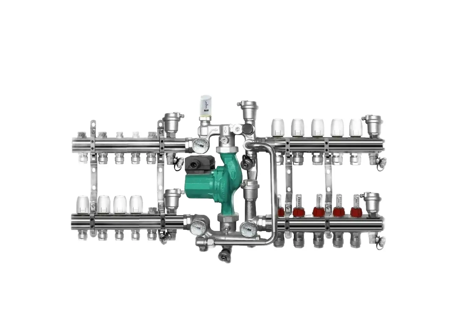В квартирах обычно монтируем компактные коллекторы на 3–5 контуров для радиаторов и теплого пола. В частных домах система сложнее — добавляются контуры бойлера, бассейна и дополнительных зон. Монтаж коллекторных узлов в частном доме требует тщательного расчета производительности насоса и установки дополнительных групп безопасности.